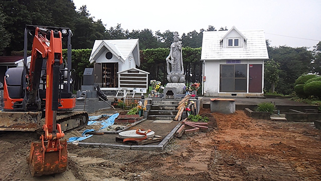| 玉川ペット霊園が創立した、昭和62年からのご遺骨は、共同墓地の中央にあたる、観音様下に 埋葬となっておりましたが、たくさんのご遺骨でいっぱいになった為、平成25年7月に増設工事をはじめ 平成25年8月中旬からは現在までは、増設された左側手前(観音様を正面に見て)に埋葬となっております。 |